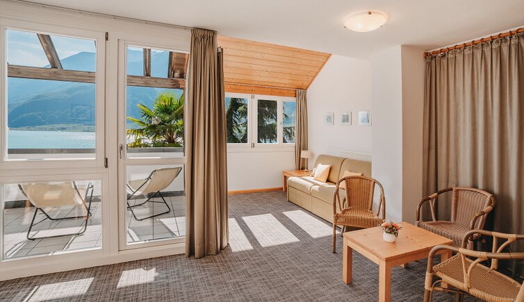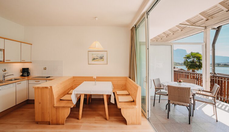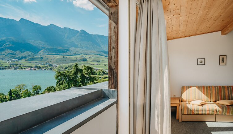 Die gut ausgestatteten Apartments verfügen alle über eine Terrasse mit herrlichem Ausblick auf den Kalterer See und die idyllischen Weinberge von Kaltern bis Tramin. Abends lassen sich dort die letzten Sonnenstrahlen genießen.
