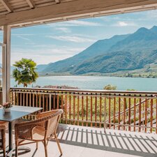 Umgeben von Weinreben und Ansitzen, liegt Mitterdorf am Hang oberhalb von Kaltern Dorf auf 477 m Meereshöhe