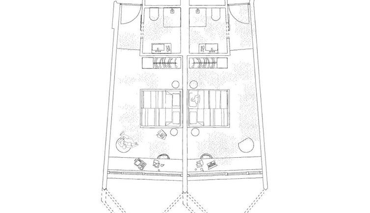 The structure of the hotel reminds of a ship in the harbour, embedded in the natural landscape. The exterior is reflected inside in form and colour: the water and shore world, the tree landscape and the vineyards.