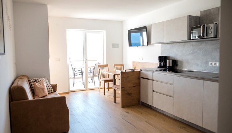 The sunny and light-flooded holiday flats have a living area with sofa and TV, a fully equipped kitchenette, one or two bedrooms, a bathroom with shower and a balcony.