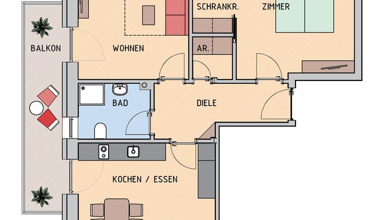 Vi aspettano due appartamenti vacanza completamente nuovi, arredati con mobili in legno di pino massiccio locale.