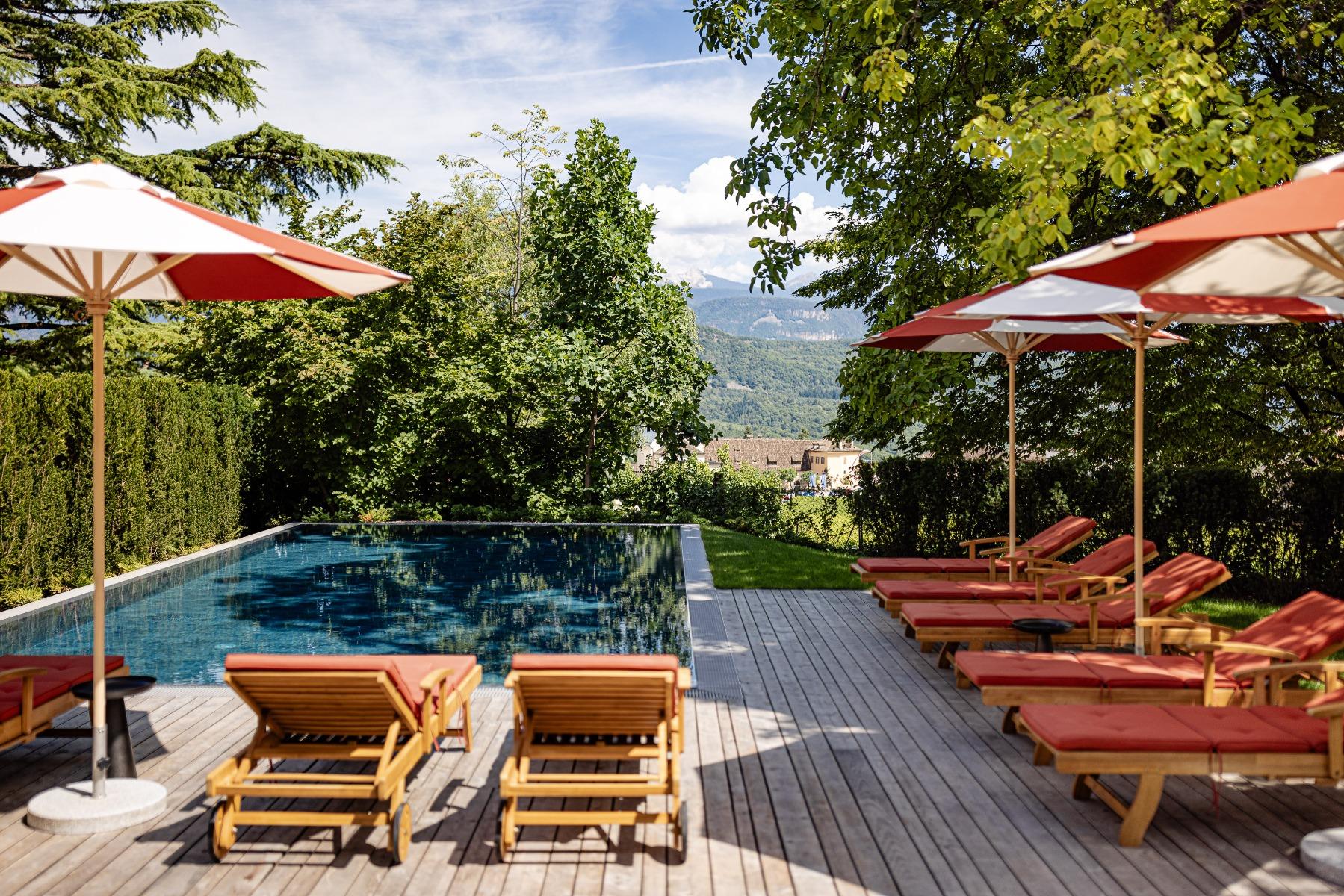 L’edificio storico, una tradizionale tenuta vinicola, è stato accuratamente restaurato e combina il lusso moderno con il fascino unico della regione. Con solo 15 camere e suite arredate in modo personalizzato, l’hotel offre un’atmosfera di intimità e tranquillità che invita al relax e al benessere. Alcune delle suite sono dotate di spa privata per garantire agli ospiti il massimo comfort e privacy. Questo hotel adults only offre un’oasi di pace per coppie e un rifugio esclusivo per chi viaggia in solitaria. La giornata inizia con una squisita colazione con specialità regionali e prosegue con un ricco ventaglio di attività, tra cui rilassanti passeggiate tra i vigneti circostanti o una visita al Lago di Caldaro.