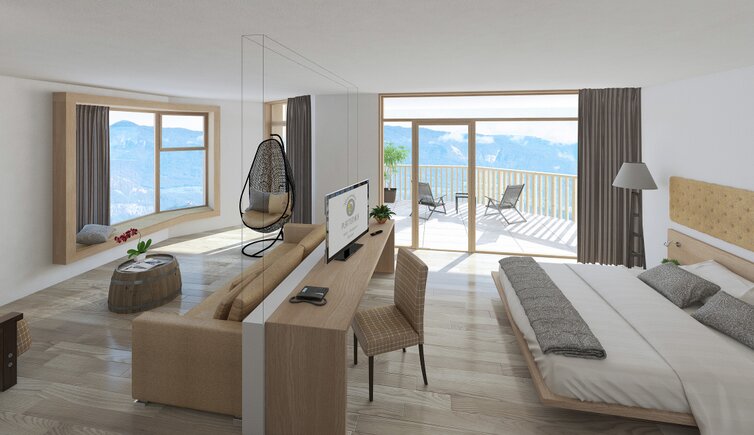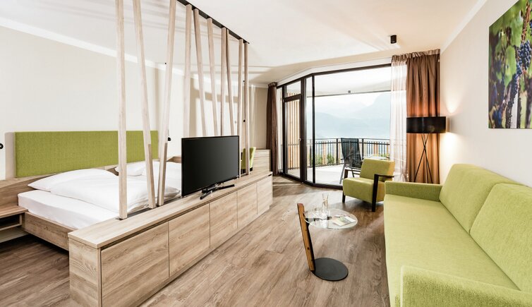 la posizione tranquilla tra i vigneti con vista mozzafiato sul Lago di Caldaro, i vigneti e frutteti che sembrano infiniti, le dolci colline, ampie vallate e villaggi da sogno.